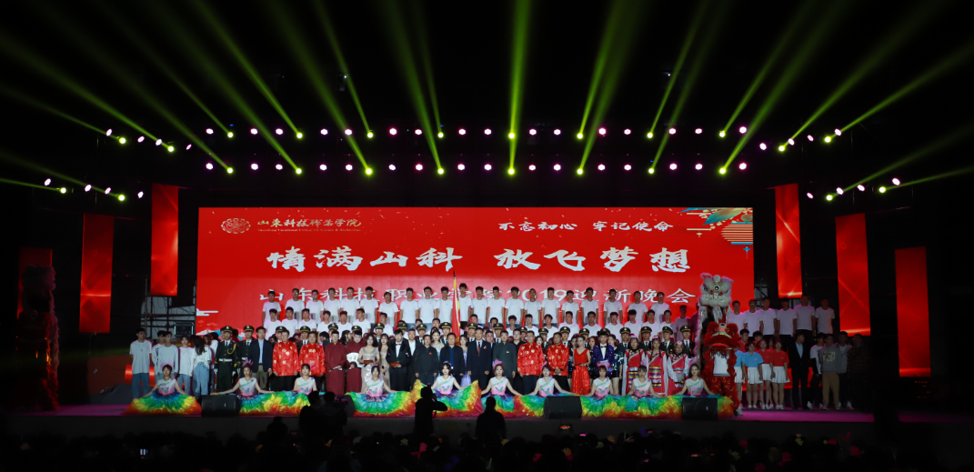 星光熠熠新时代,青春激昂正当时。为深入学习贯彻习近平新时代中国特色社会主义思想,扎实推进我院“不忘初心、牢记使命”主题教育,向2019级新生呈现我院深厚的文化底蕴,展示办学成就,振奋师生精神,激发新生和全院师生员工团结奋进的热情, 2019年11月1日晚,“情满山科·放飞梦想”2019迎新晚会在经纬文化广场成功举行,学院党委书记郑德前,副院长王永智、刘同顺,纪委书记秦建坤出席活动,各系部党政正职及相关职能部门负责同志、全体辅导员与2019级全体新生共同观看晚会。