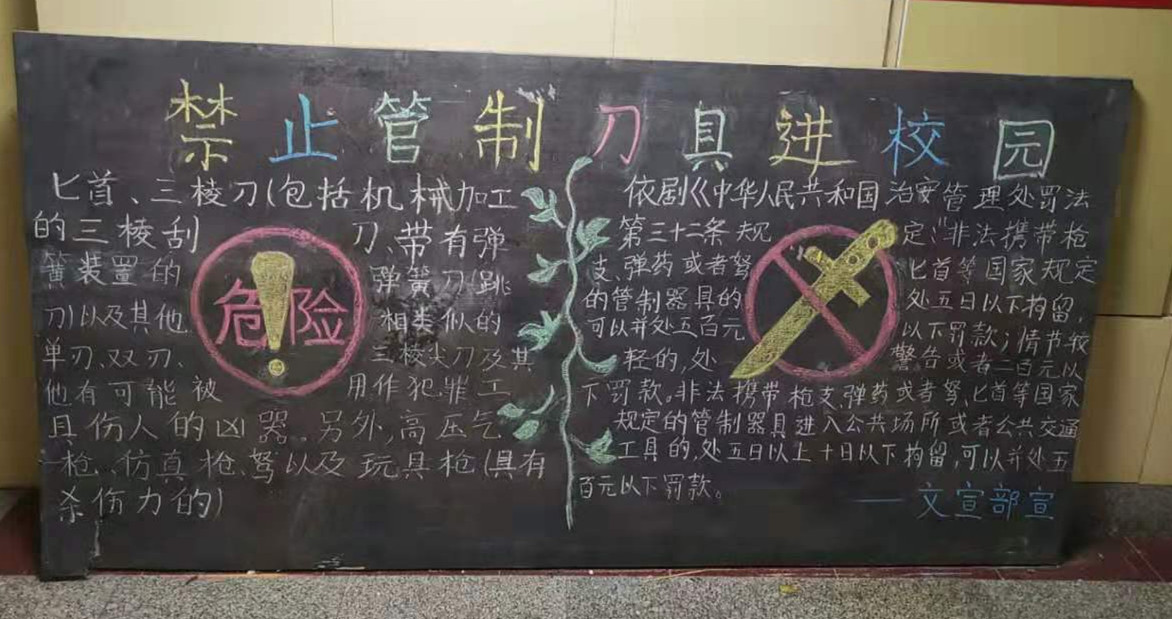为使活动取得实效,各系部利用主题班会、座谈会、黑板报以及多媒体等多种宣传方式广泛宣传携带管制刀具的严重危害性,鼓励学生对管制刀具积极举报,确保管制刀具收缴工作无遗漏,学生无携带、藏匿管制刀具现象发生。全院各系部辅导员、安全保卫处、学生公寓管理人员等20余名老师全程参与管制刀具收缴活动。