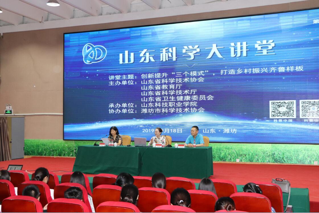 2019年9月18日,由山东省科学技术协会、山东省教育厅、山东省科技厅、山东省卫生健康委主办,山东科技职业学院承办,潍坊市科学技术协会协办的第149期山东科学大讲堂在山东科技职业学院如期举行,来自承办方及协办单位相关负责人、师生约500人参加本次活动。