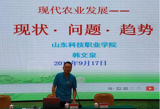 汤丽丽副教授以生动的案例介绍了以贸工农一体化为主的“诸城模式”、以农业产业化经营为主的“潍坊模式”、以蔬菜生产产业化为主的“寿光模式”的发展历程,围绕打造齐鲁乡村振兴样板做了精彩的分享。韩文泉教授则分析了现代农业的发展现状和未来趋势,从强优势、补短板、抓改革、重创新、扩开放、促融合等多个层面诠释了“三个模式”新内涵、新标准、新要求。