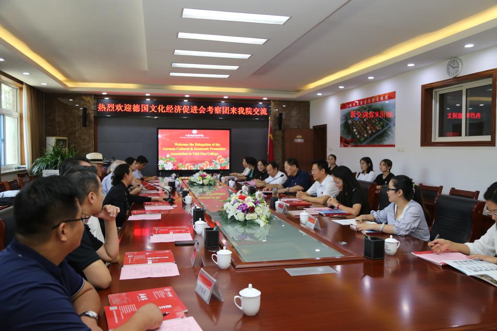近日,德国文化经济促进会主席艾哈特˙捞、常务理事长孙燕一行10人来访我院洽谈中外合作办学事宜。学院院长刘桂玉、副院长王永智及相关职能部门负责人接待了来访客人。
