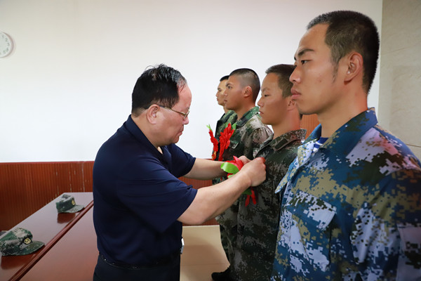 刘桂玉院长为新兵佩戴大红花