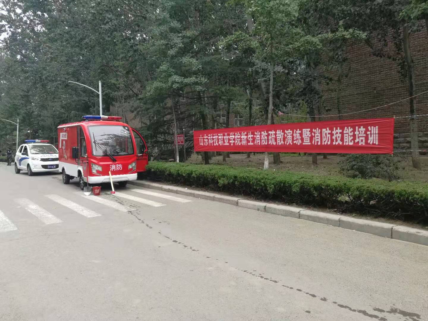 应急疏散演练结束后,安全保卫处组织新生代表进行了灭火器和消防栓技能培训演练,经过对灭火器及消防栓实际操作,使同学们形象、直观的掌握了灭火技能以及灭火器、消防栓的使用方法。