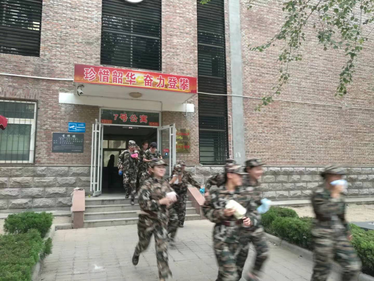9月11日下午14:00,尖锐的警报声打破午后的宁静,2019级新生消防应急疏散演练开始,7栋新生学生公寓楼道内烟雾弥漫,疏散警笛声随后响起。室内的同学们迅速用湿毛巾捂住口鼻,在引导员的引导下,按照既定疏散路线,有序向外撤离,到指定地点集合。在疏散过程中,同学们听从指挥,教官和引导员沉着冷静应对,整个疏散过程井然有序,取得了良好效果。演练结束后,各公寓楼演练负责人对应急疏散演练进行了点评。