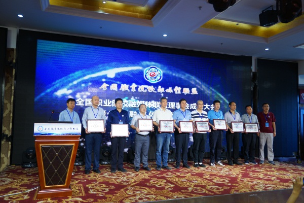 天津轻工职业技术学院当选为首届轮值理事长单位,现代职业教育网当选为秘书处单位,推选出10所院校当选为副理事长单位。我院当选为联盟的首任副理事长单位,张雪魁教授和郝康平副处长为副理事长单位颁发牌匾,我院副院长李保城代表学院上台领牌匾。