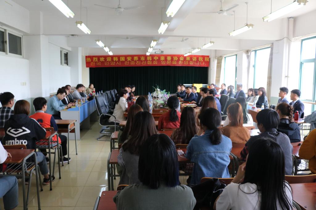 4月19日,韩国安养市韩中亲善协会会长金振玩一行27人来我院访问交流。学院副院长王永智、国际交流与合作部、商务外语系负责人等热情接待了来访客人。