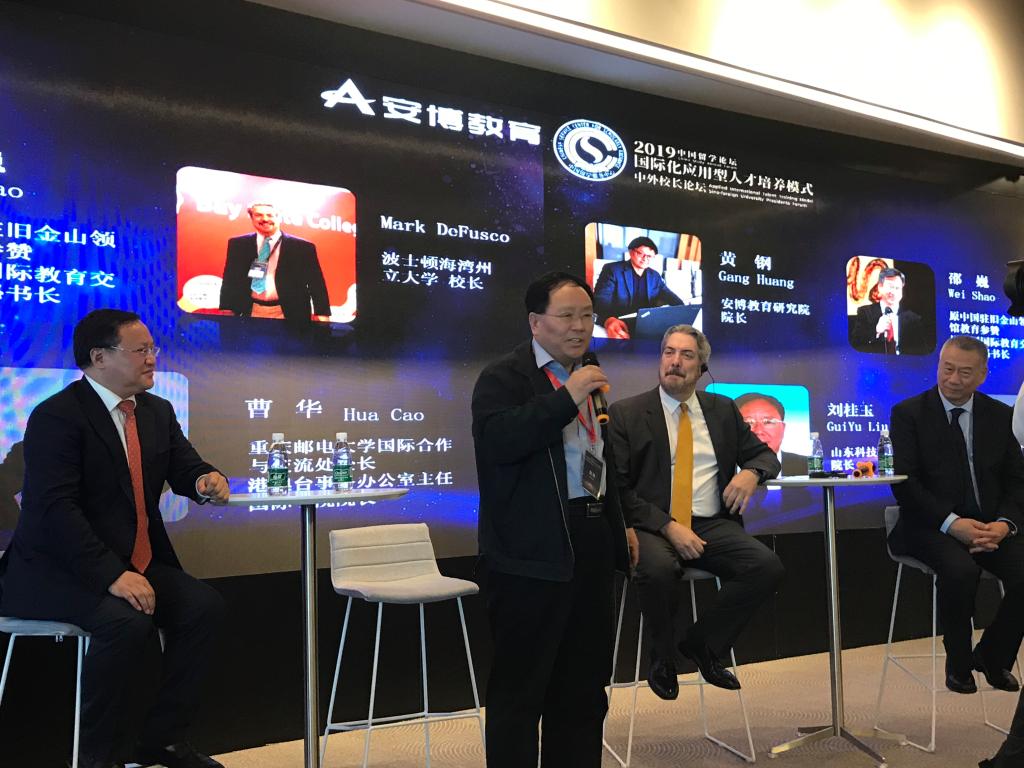 3月21日,刘桂玉院长应邀参加2019年中国留学论坛国际化应用人才培养模式中外校长论坛,近百所中外高等院校的校长或代表参加了此次会议。会议由中国(教育部)留学服务中心主办、安博教育集团承办、全球职业与教育质量评估认证机构协办。