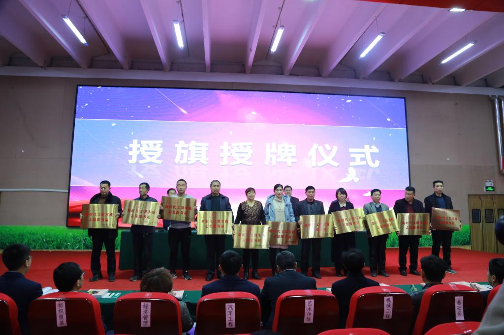 仪式上,出席领导为我院11支“潍城区新时代文明实践山东科技职业学院志愿服务队”授旗,为望留街道11个村居“山东科技职业学院新时代文明实践志愿服务站”授牌,山东科技职业学院新时代文明实践志愿服务队代表进行了宣誓。仪式结束后,对参与志愿服务活动的300余名师生和村居实践站专管员开展了“新时代文明实践志愿服务专题培训”,并且组织了各系部党总支书记与望留街道11个村居书记的对接交流,为志愿服务项目的实施和运行提供了保障。