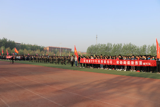 4月18日早上6点,学院以“打造书香校园 共建优质院校”为主题的第二届“读书节”开幕式在学院操场举行。院长助理孙淑敏、组织部(统战部)、办公室(宣传部)、学生工作处、图书馆等部门负责人,教师代表和2017级全体学生5000余人出席。开幕式由图书馆馆长赵学云主持。