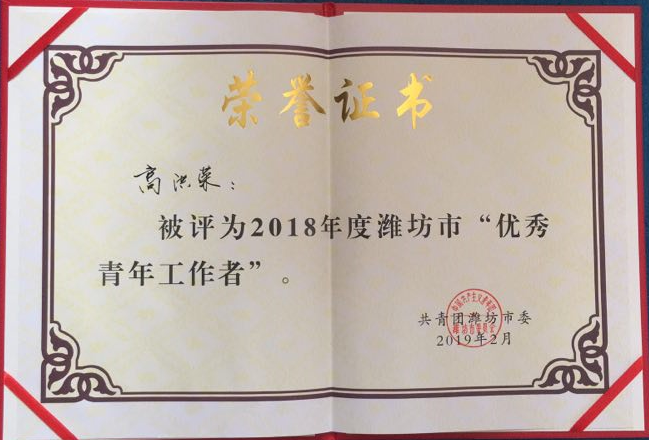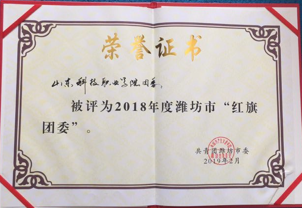 2月28日,共青团潍坊市十九届四次全委(扩大)会议举行。会议总结了2018年度全市共青团工作,分析研判当前形势,安排部署2019年工作任务。会上表彰了2018年度全市共青团工作中先进集体和个人,我院团委在潍坊市2018年度共青团工作综合评比中,以驻潍十五所中高职院校第一名的成绩荣获“潍坊市红旗团委”称号,高洪荣同志被评为“先进青年工作者”。