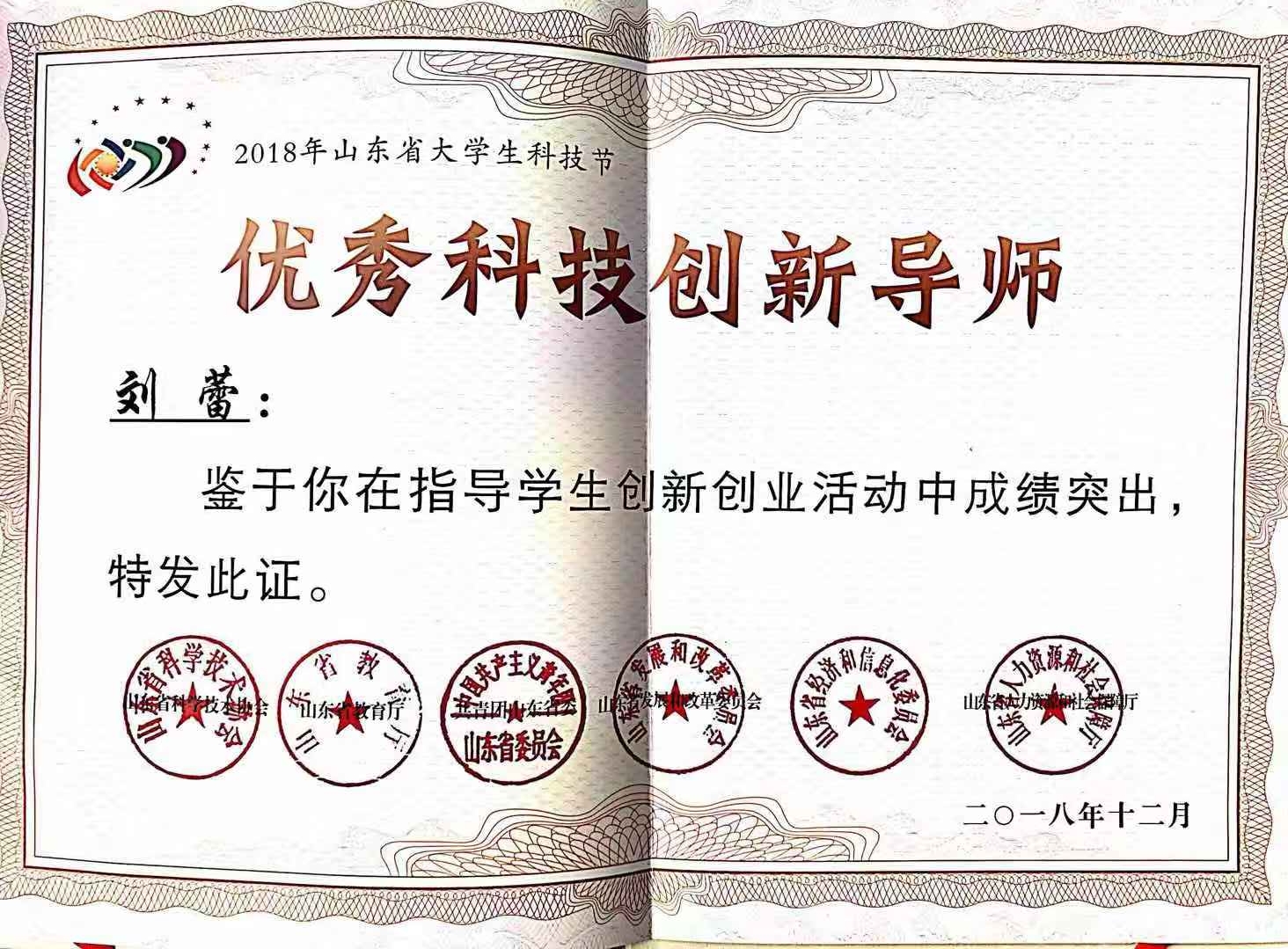 近期,第十届山东省大学生科技节评选结果揭晓,我院纺织服装系刘蕾老师荣获“2018年山东省大学生优秀科技创新导师”称号,2016级服装与服饰设计1班王永丽同学获“2018年山东省大学生优秀创客”称号。据悉,这是我院师生教师首次荣获此项荣誉。