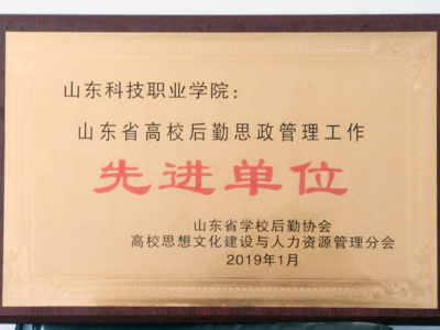 山东省学校后勤协会高校思想文化建设与人力资源管理分会为表彰我省学校后勤事业发展和在后勤思想文化建设、人力资源管理方面做出突出成绩的单位和个人, 2018年12月开展评优活动树立典型,我院被评为“2018年度山东省高校后勤思政管理工作先进单位”。