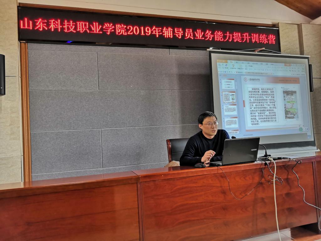 为深入贯彻落实习近平新时代中国特色社会主义思想和全国高校思想政治工作会议和全国全省教育大会精神,推动《中共中央国务院关于加强和改进新形势下高校思想政治工作的意见》《普通高等学校辅导员队伍建设规定》的学习实施,进一步加强我院辅导员队伍专业化、职业化建设,提升大学生思想政治教育质量,2019年2月21日-2月24日,2019年辅导员业务能力提升训练营在学院办公楼三楼党校举行。全院各系部全体专职辅导员参加了此次训练营。学校党委委员、副院长丁文利出席了开营仪式并讲话。