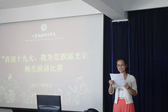 9月28日,学院组织部(工会、统战部)、教学中心、学生工作处三部门联合举办---“喜迎十九大、我为党旗添光彩”师生演讲比赛,隆重迎接十九大的到来。院长助理孙淑敏、组织部部长娄风来、学生工作处主任高洪荣、教学中心主任李兴凯及来自全院各部门师生代表参加了本次活动。