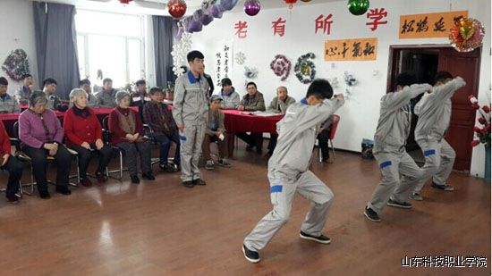 2014年12月30日,汽车工程系在长春一汽大众实习的五十余名同学组成义工服务队,下班后来到长春市朝阳区“尚我佳”老年公寓,举行“庆元旦 慰老人”主题团日活动,他们照顾老人的生活起居,为老人带来欢乐,用实际行动践行山科志愿精神,将山科的爱传至“千里之外”。